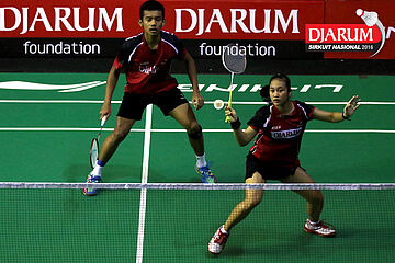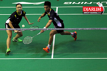 Lukhi Apri/Ririn Amelia (Djarum Kudus) berhasil menghadang serangan
