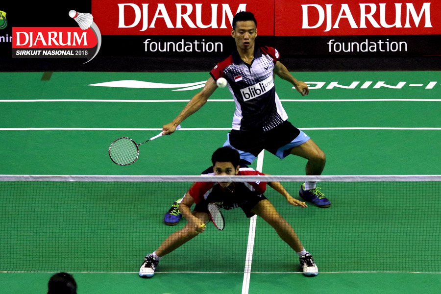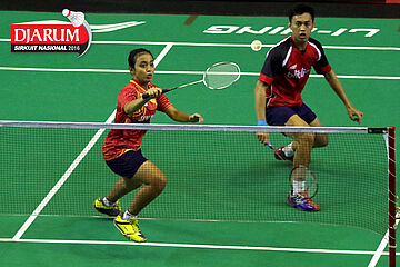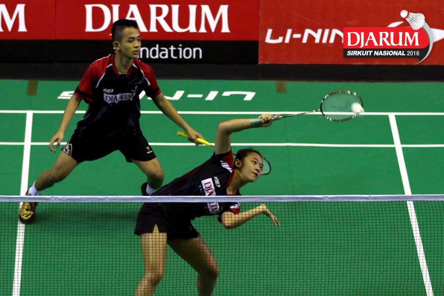 M. Shohibul/Intan Tri (Pusdiklat Telkom) mengembalikan shuttlecock
