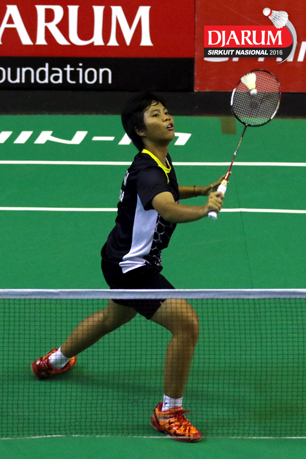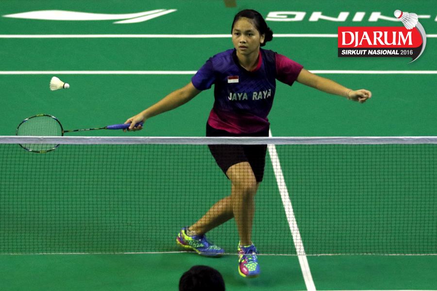 Olivia Chelin (Jaya Raya) mengembalikan shuttlecock