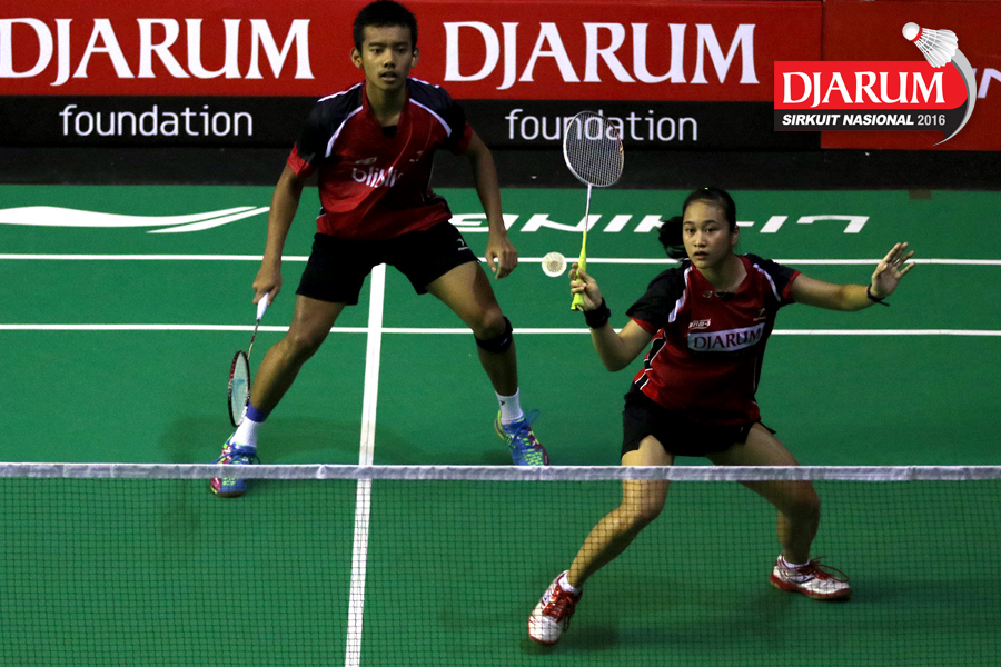 Tedi Supriadi/Syifa Fauziah (Djarum Kudus/Jaya Raya) bersiap menyambut pengembalian