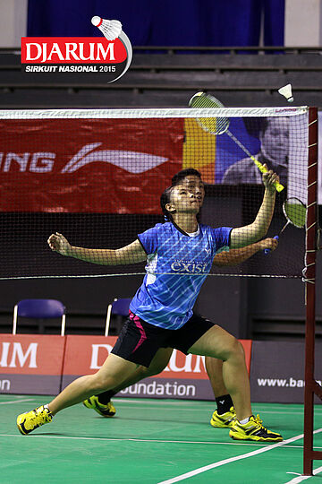 Akbar Gusti/Cynthia Shara (Djarum Kudus) menghadang serangan