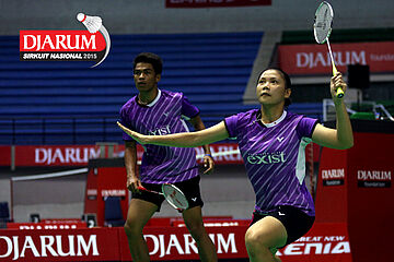 Dian Fitriani/Nadya Melati (Pertamina Fastron) menyambut pengembalian.