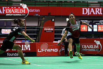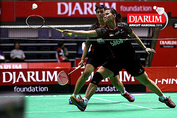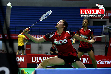 Komala Dewi/Vita Marissa (DJarum Kudus) menyambut pengembalian.