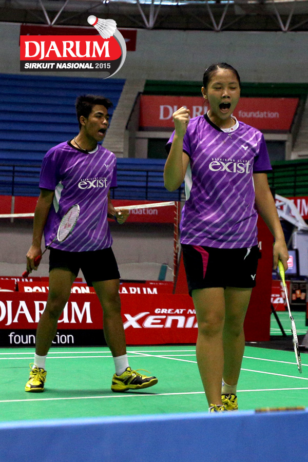Selebrasi Gea Kamahamas/Brigita Marcelia (Exist) saat mencetak poin.