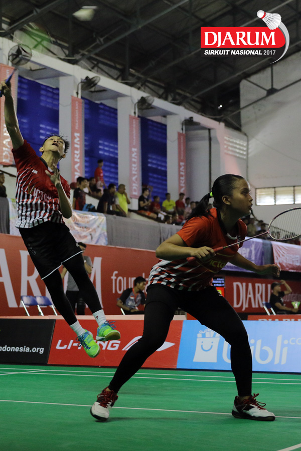Fiesal Wiranto/Annisya Widya Permatasari (Pusdiklat Telkom/Mutiara Cardinal) Mengembalikan Shuttlecock