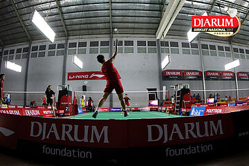 Salah Satu Pebulutangkis Saat Berlatih di GOR ASA Sport Centre, Cilegon, Banten.