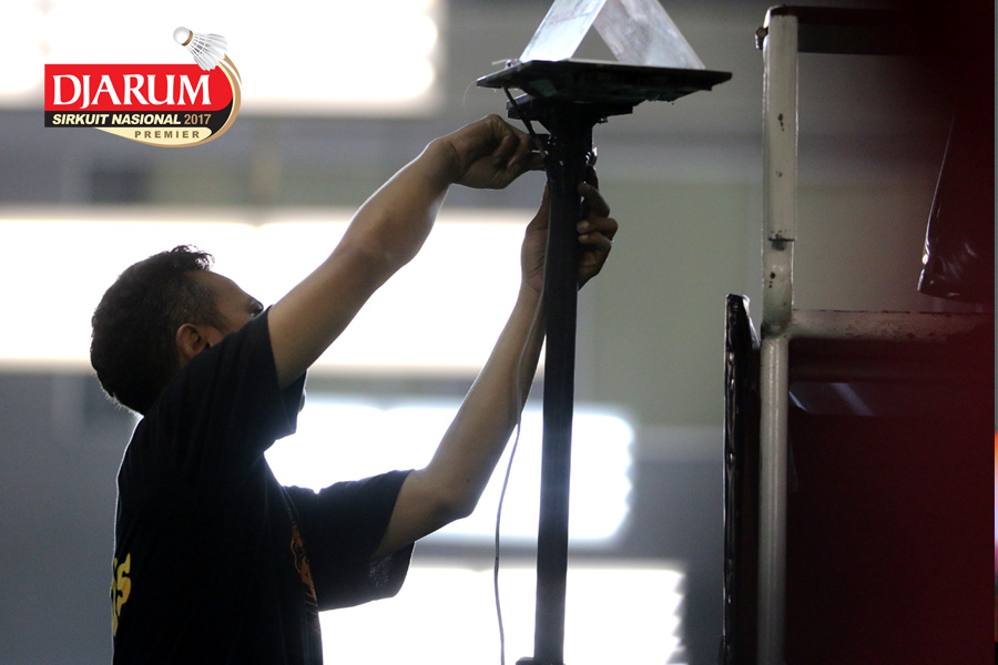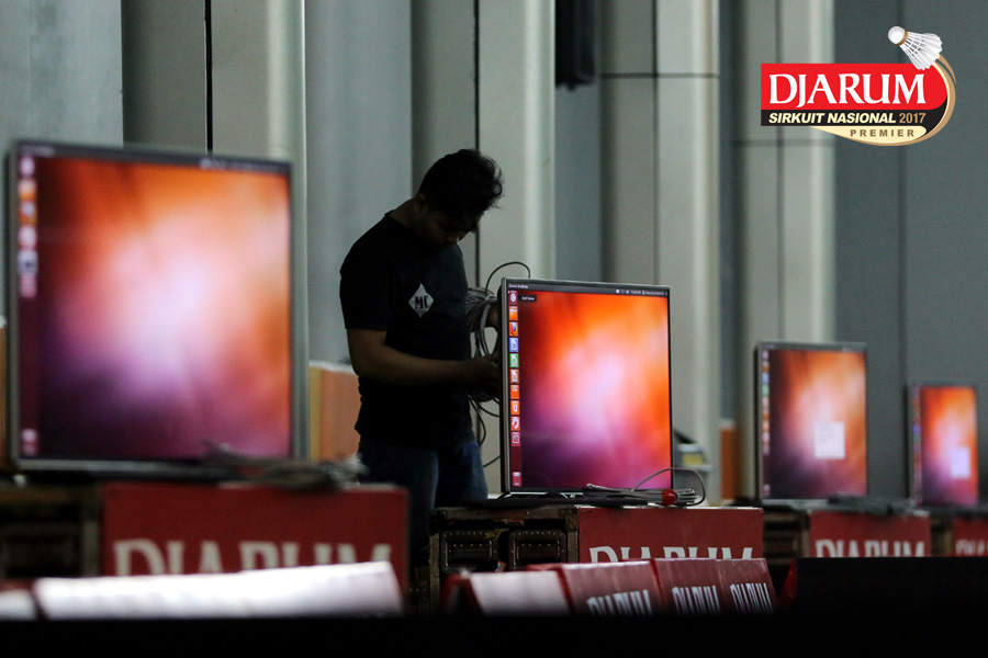 Salah Satu Petugas Saat Mempersiapkan Perangkat Live Score