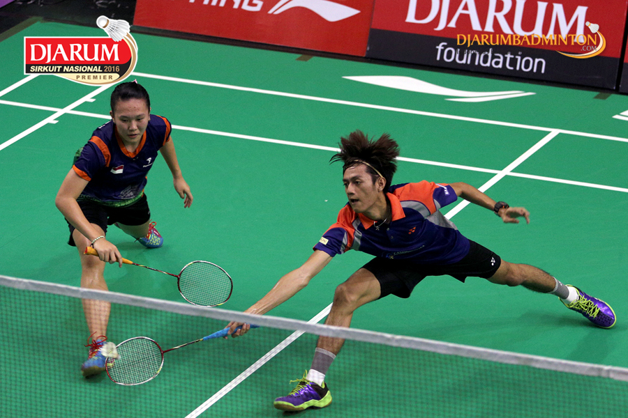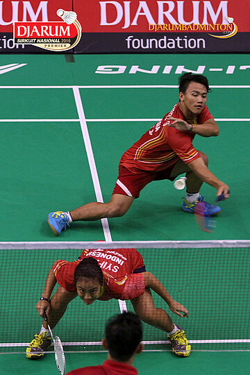 Tedi Supriadi/Della Augustia (Djarum Kudus) menghadang serangan