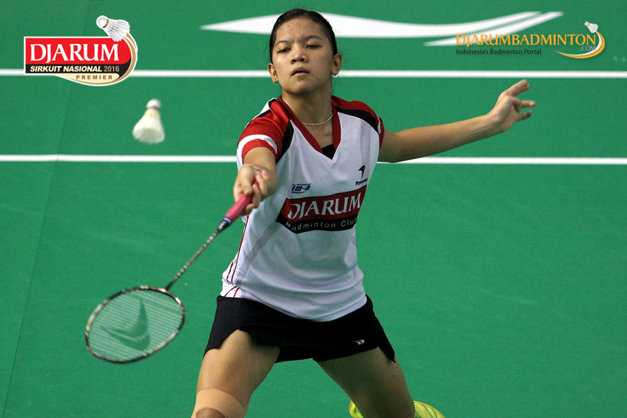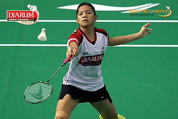 Alya Rahma (DJarum Kudus) mengembalikan shuttlecock