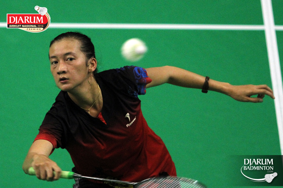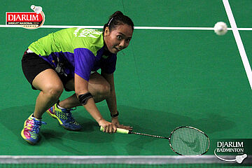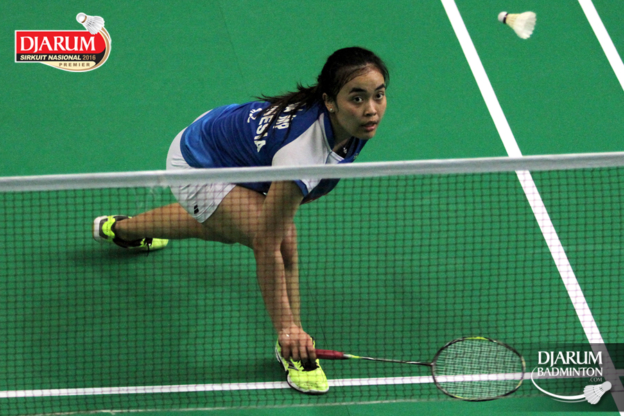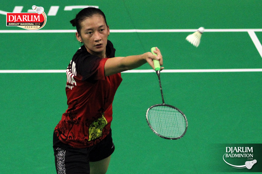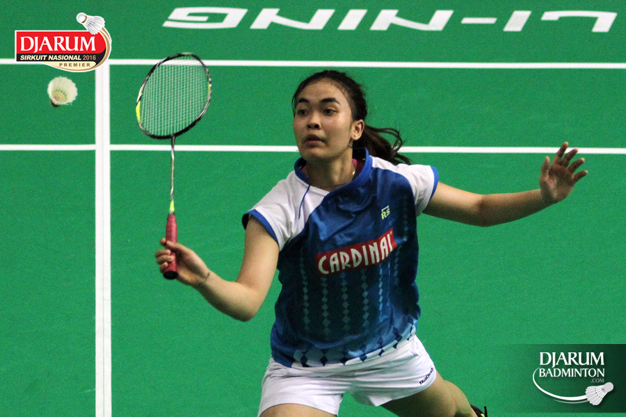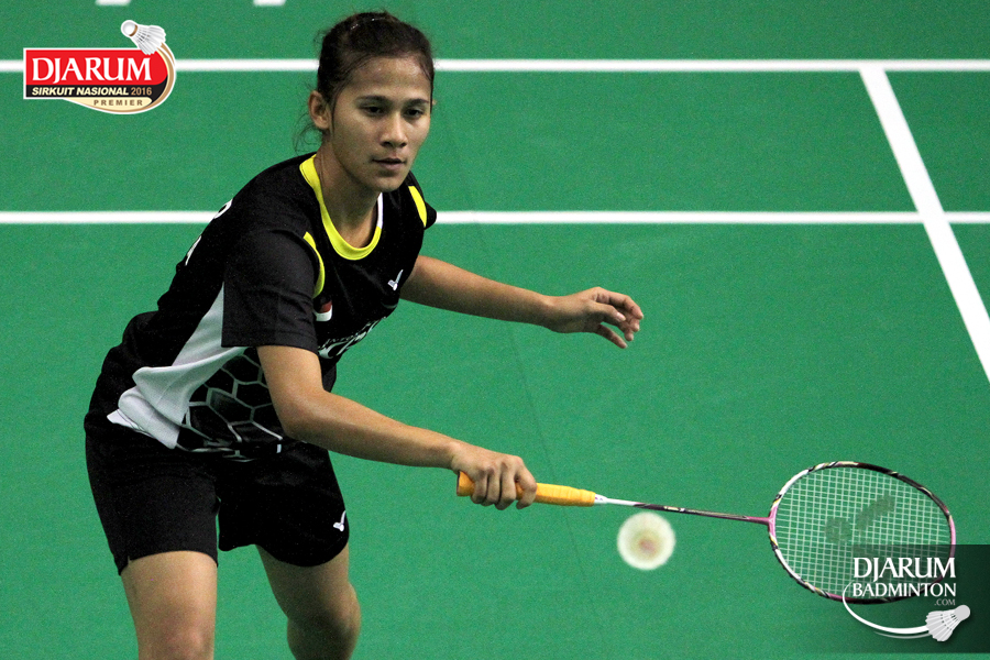Aprillia Yuswandari (Semen Gresik) mengembalikan shuttlecock