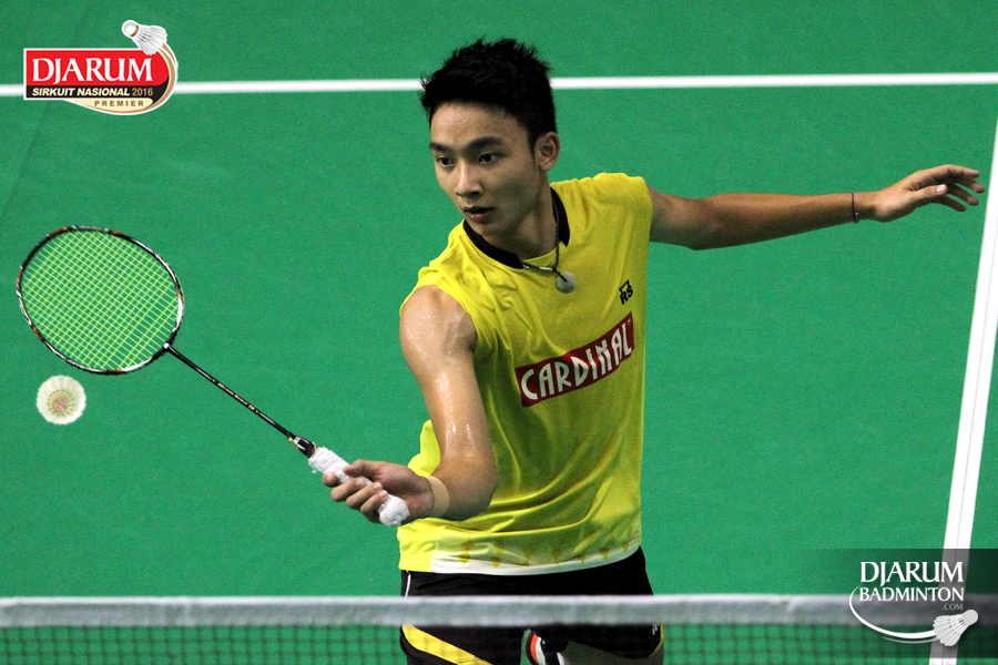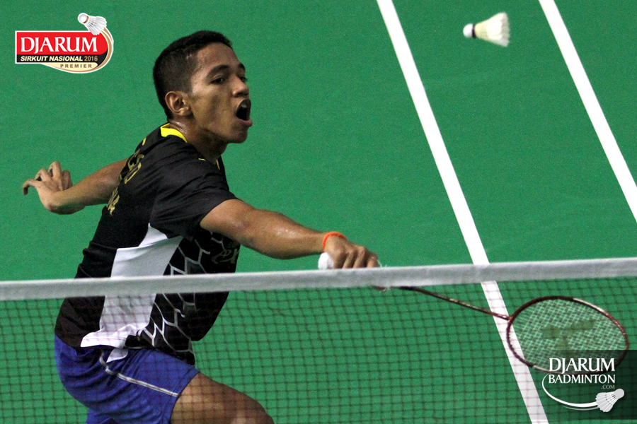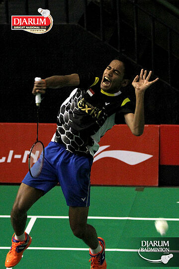 Wisnu Yuli (Djarum Kudus) melepaskan serangan