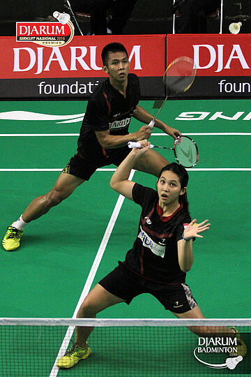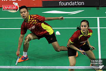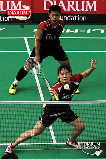 Rizal M. Sofyan/Ribka Sugiarto (Djarum Kudus) bersiap menyambut pengembalian