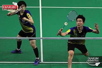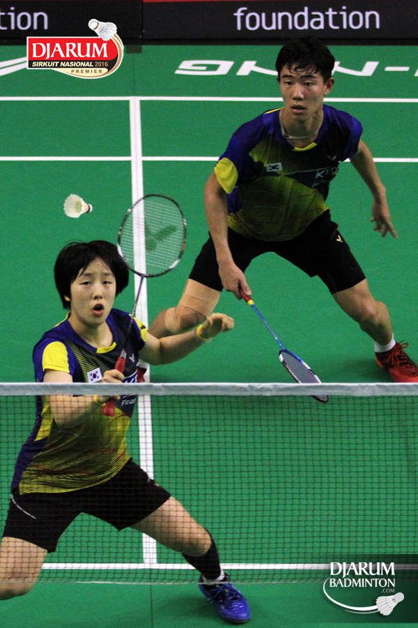 Min Hyuk Kang/Hyang Im Kim (Korea) menghadang serangan