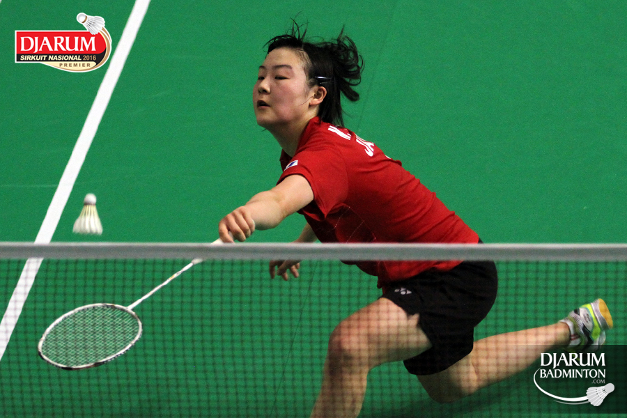 Yura Nagisa (Jepang) mengembalikan shuttlecock