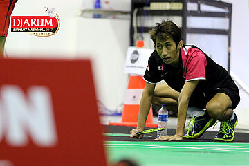 Salah Satu Atlet Tunggal Putra Djarum Kudus, Saat Menggunting Senar Raketnya
