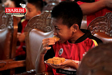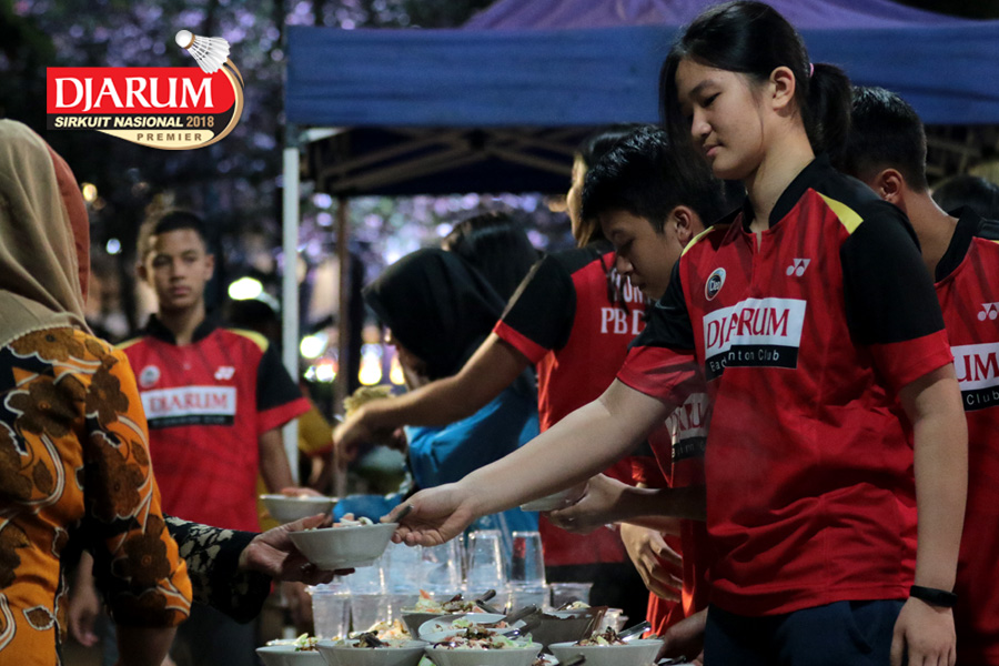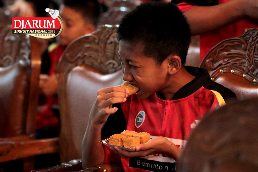 Salah Satu Atlet Terlihat Asyik Menyantap Camilan Saat Acara Gala Dinner Djarum Sirkuit Nasional Premier Li-Ning Jawa Tengah Open 2018