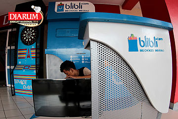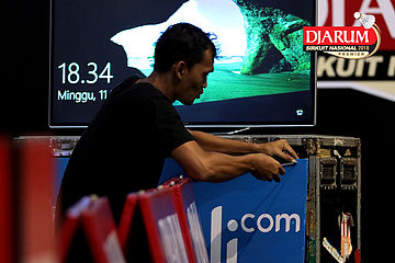 Salah Satu Petugas Saat Mempersiapkan Perangkat Logistik Djarum Sirkuit Nasional Premier Li-Ning Jawa Tengah Open 2018 Di Booth Blibli.com