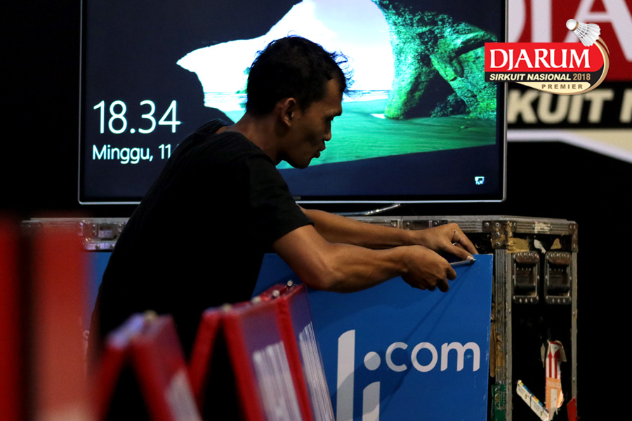 Salah Satu Petugas Saat Mempersiapkan Perangkat Logistik Djarum Sirkuit Nasional Premier Li-Ning Jawa Tengah Open 2018