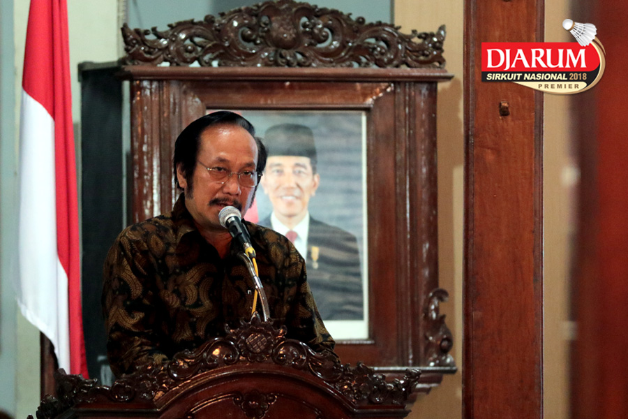 Ketua Umum Pengprov PBSI Jawa Tengah, Andy Krisda Susila Memberikan Sambuat Saat Acara Gala Dinner Djarum Sirkuit Nasional Premier Li-Ning Jawa Tengah Open 2018Di Pendopo Bupati Banyumas