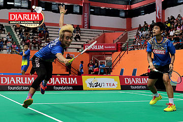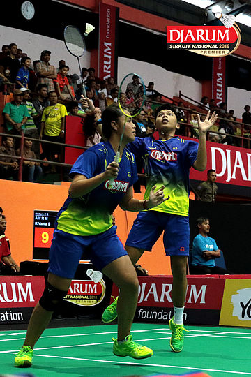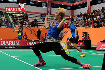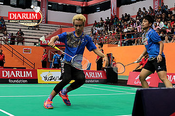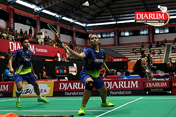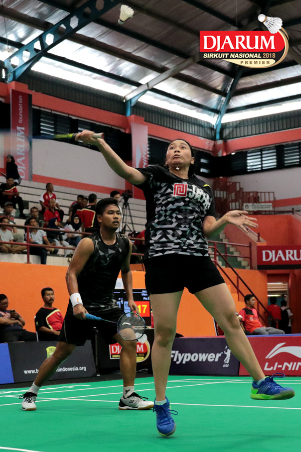Agripina Primarahmanto Putera/Nisak Puji Lestari (Berkat Abadi/Mutiara Cardinal) Mengembalikan Shuttlecock