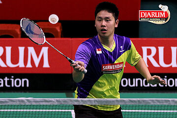 M. Lukman Hakim (Malaysia) Mengembalikan Shuttlecock.