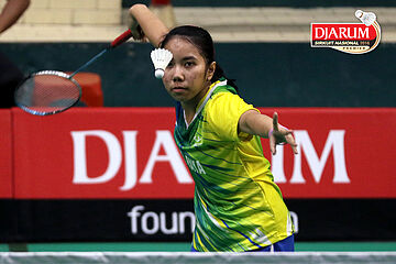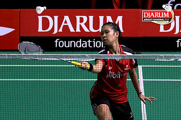 Ghina Nusrini (Djarum Kudus) Mengembalikan Shuttlecock.