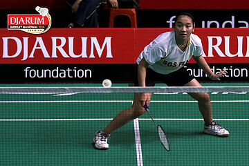 Ghina Nusrini (Djarum Kudus) Menghadang Serangan.