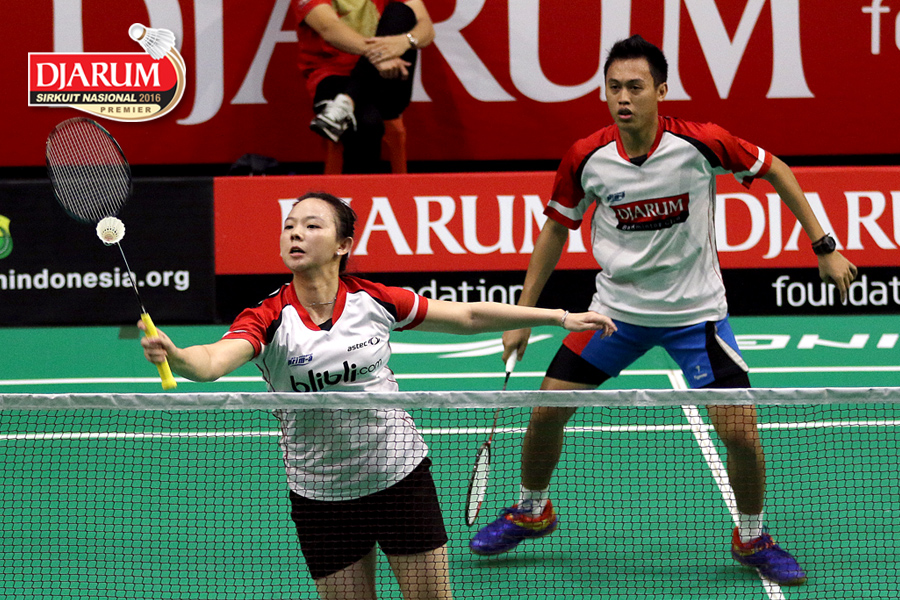 Yeremia Erich/Winny Oktavia (SKO Ragunan/Tangkas) Menghadang Serangan.