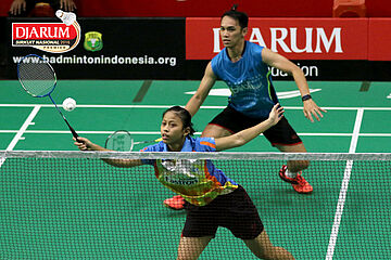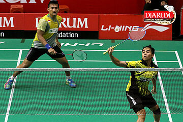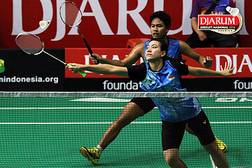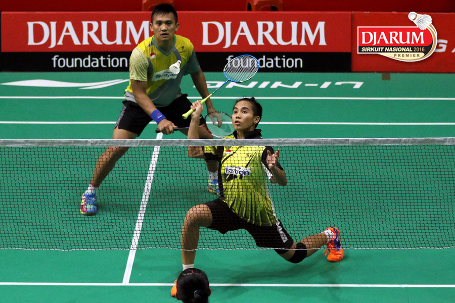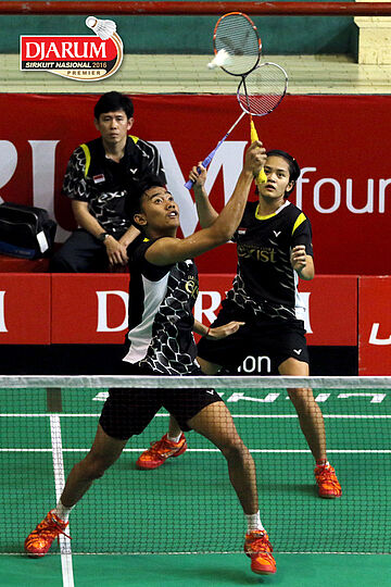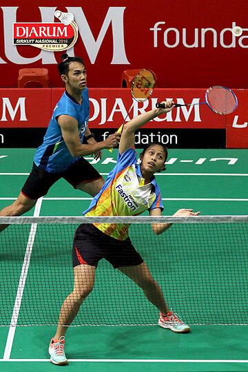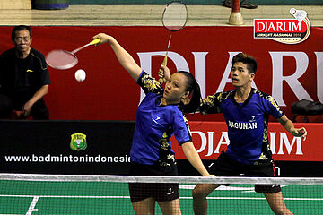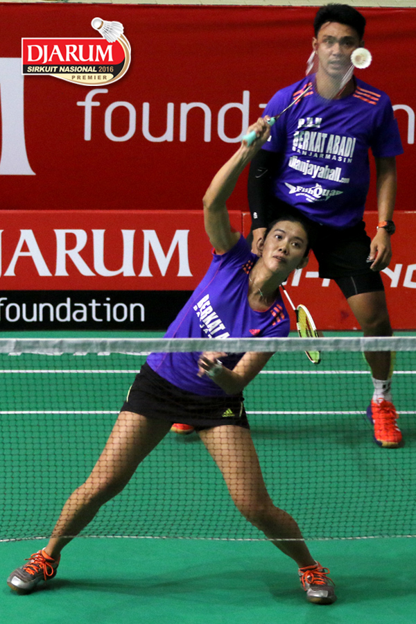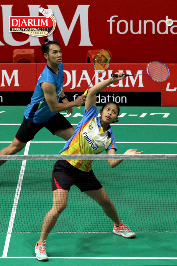 Fernando Kurniawan/Dian Fitriani (Djarum Kudus/Pertamina Fastron) Mengembalikan Shuttlecock.