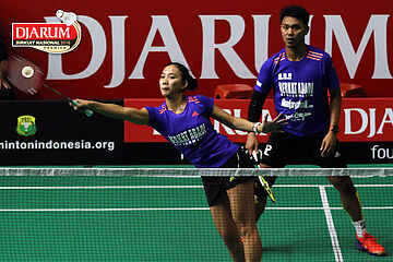Fernando Kurniawan/Dian Fitriani (Djarum Kudus/Pertamina Fastron) Menyambut Pengembalian.