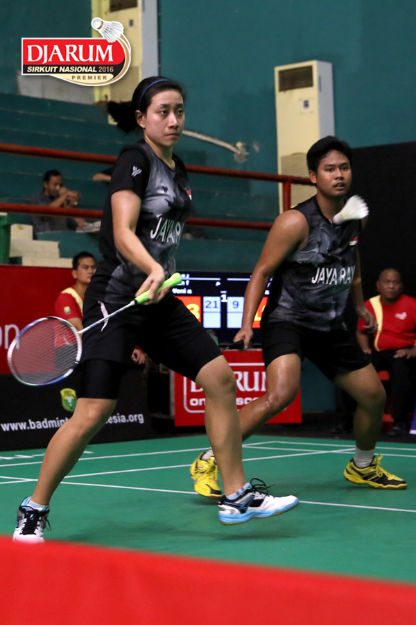 Irfan Fadhillah/Weni Anggraeni (Jaya Raya) Bersiap Menghadang Serangan.