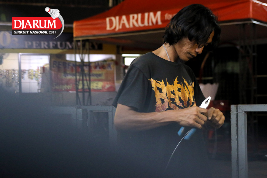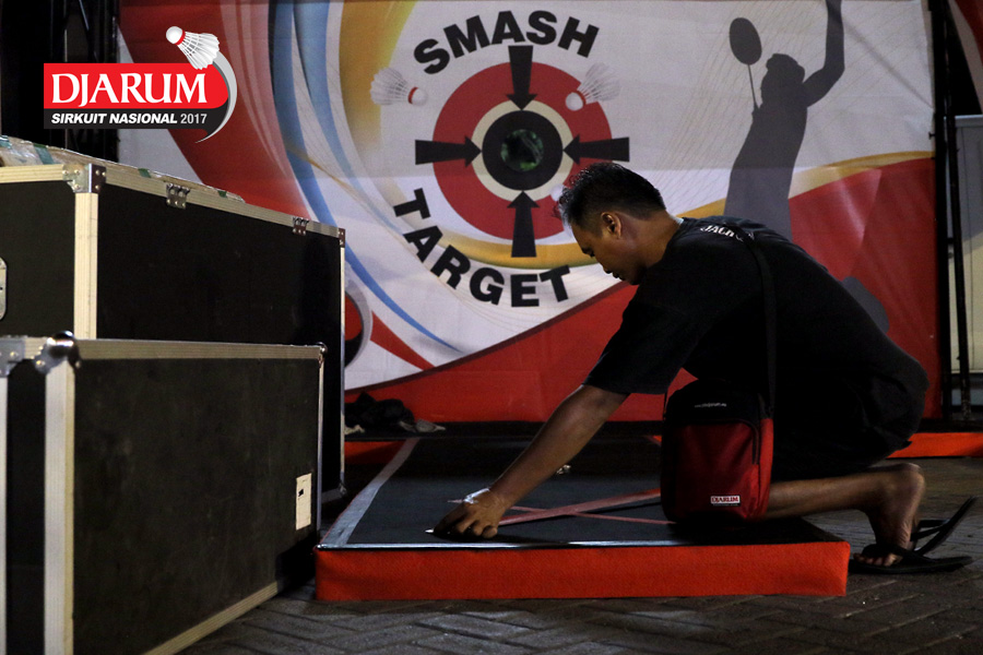 Salah Satu Petugas Sedang Mempersiapkan Perangkat Logistik Djarum Sirkuit Nasional Premier Li-Ning Jawa Timur Open 2017