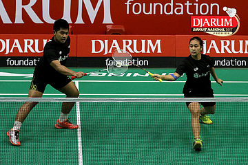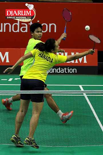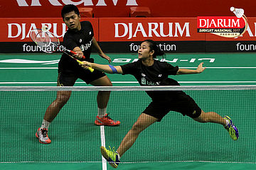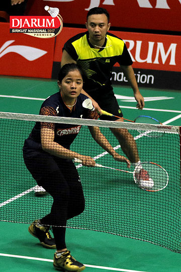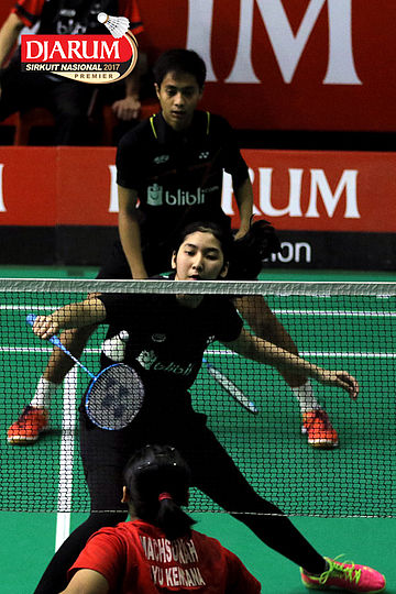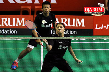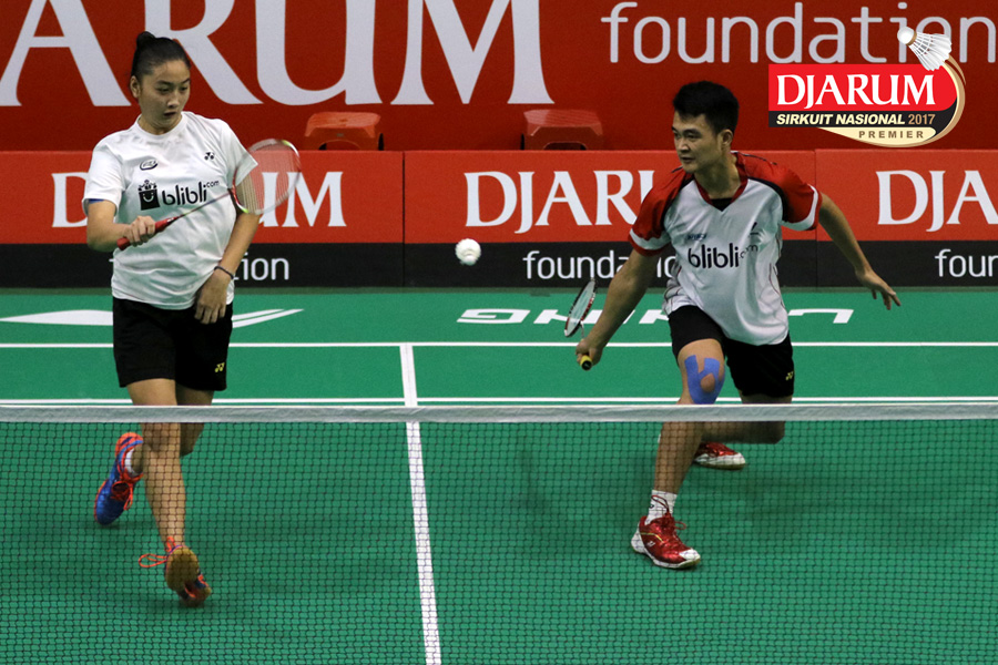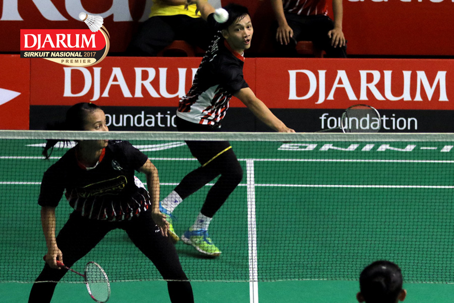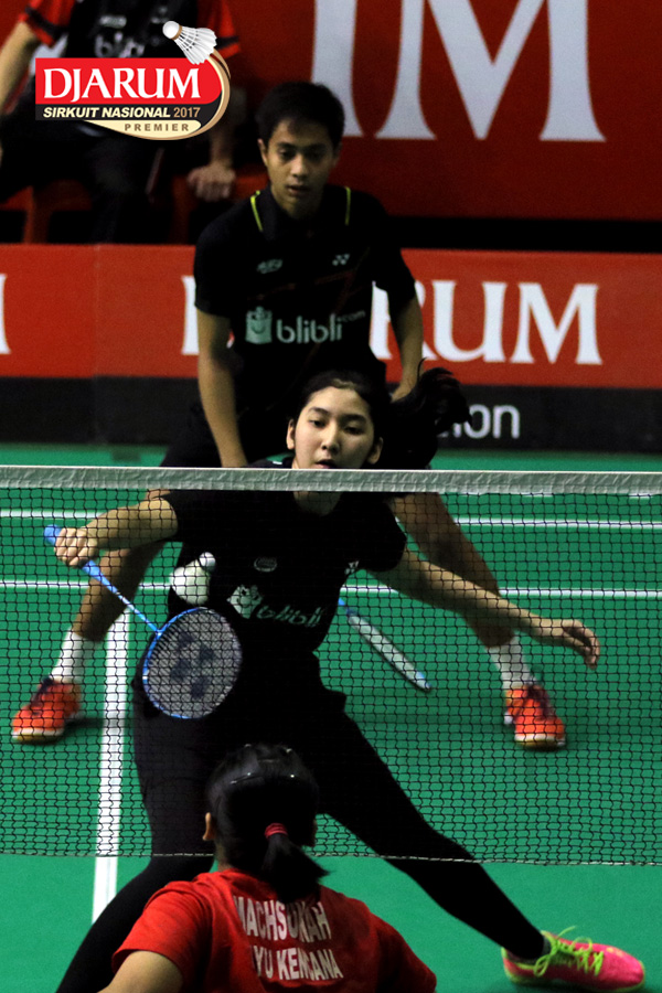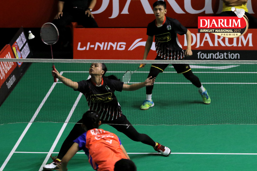 Rahmat Hidayat/Shelandry Vyola (Djarum Kudus) Mengembalikan Shuttlecock