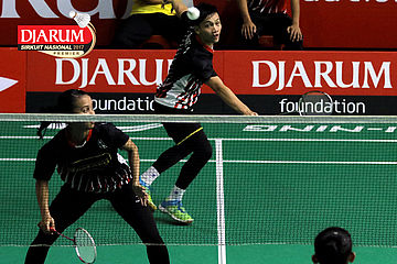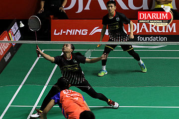 Fernando Kurniawan/Feiran Mesaeardhani Tejakusuma (Djarum Kudus/Jaya Raya) Mengembalikan Shuttlecock