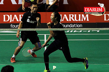 Ekspresi Leo Rollycarnando/Metya Inayah Cindiani (Djarum Kudus)
