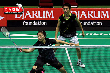 Rizky Ade Putra/Angelica Natasha Herloardjo (Eng Hian Badminton Academy/Banda Baru Batam) Bersiap Menghadang Serangan
