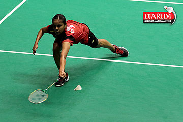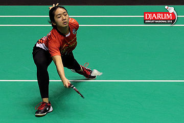 Virginia Sarce Runtukahu (PB Djarum Kudus) Berusaha Menghadang Serangan