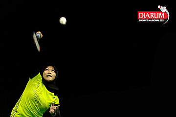 Marsa Indah Salsabila (Sarwendah Badminton Club) Melepaskan Serangan