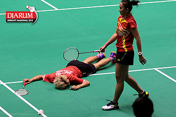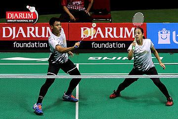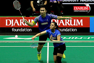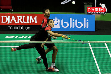 Rizko Asuro/Nadiya Melati (Pertamina Fastron) Mengembalikan Shuttlecock