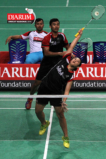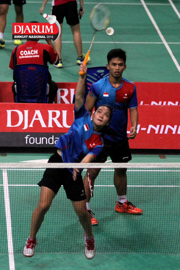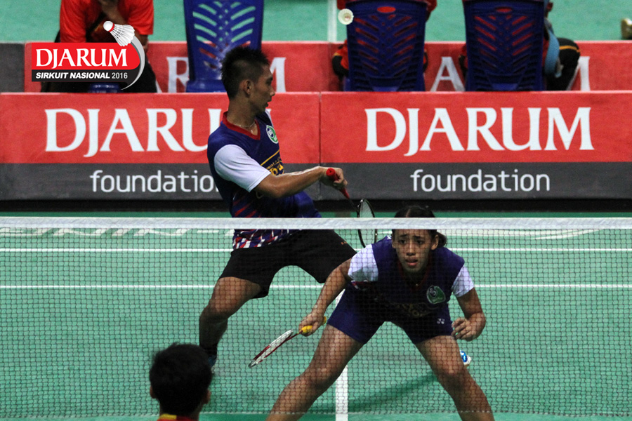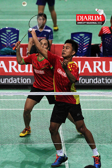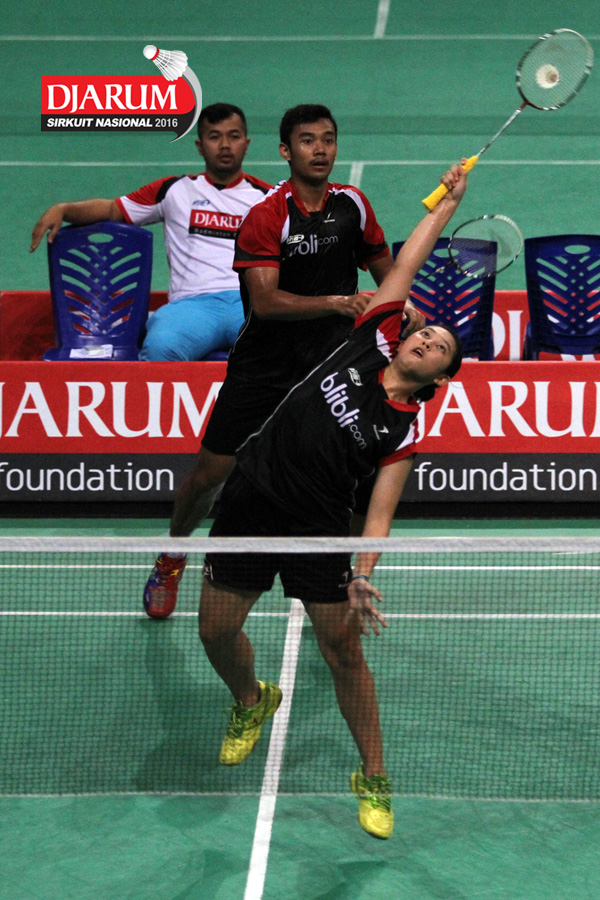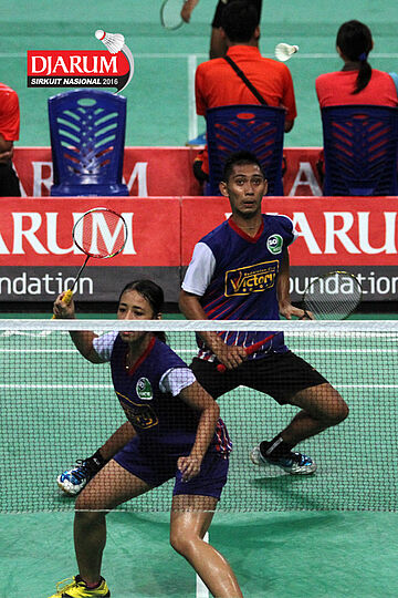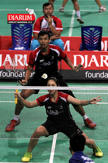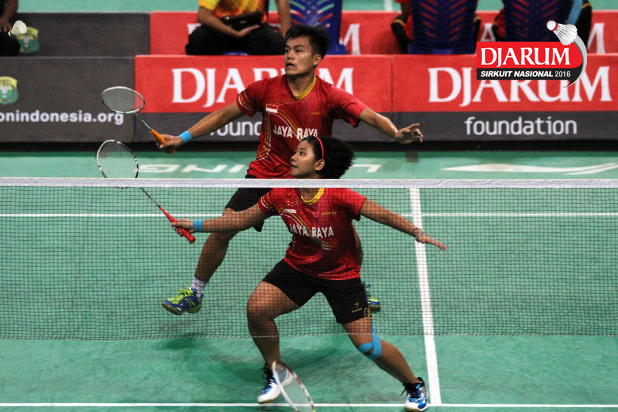 Reza Dwicahya/Tutut Novi (Jaya Raya) bersiap menyambut pengembalian