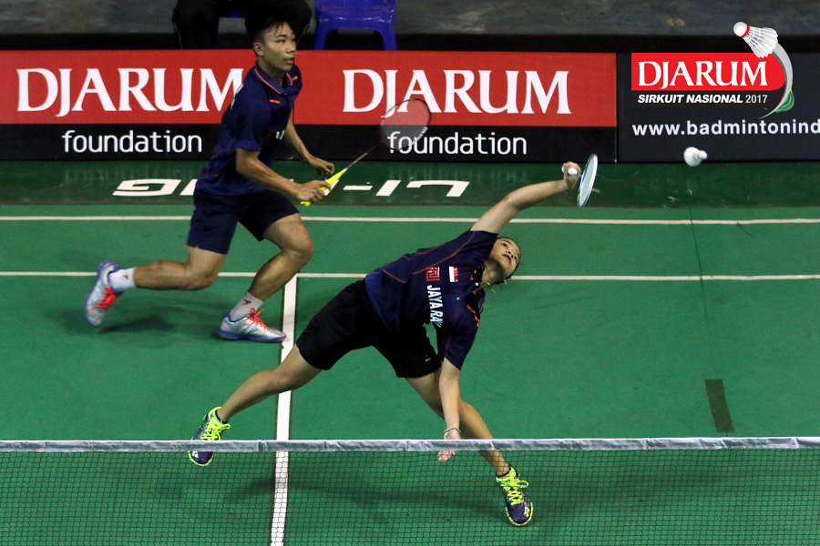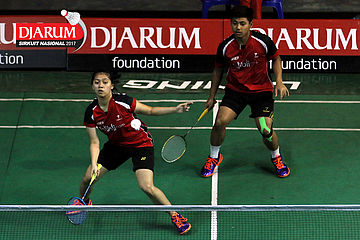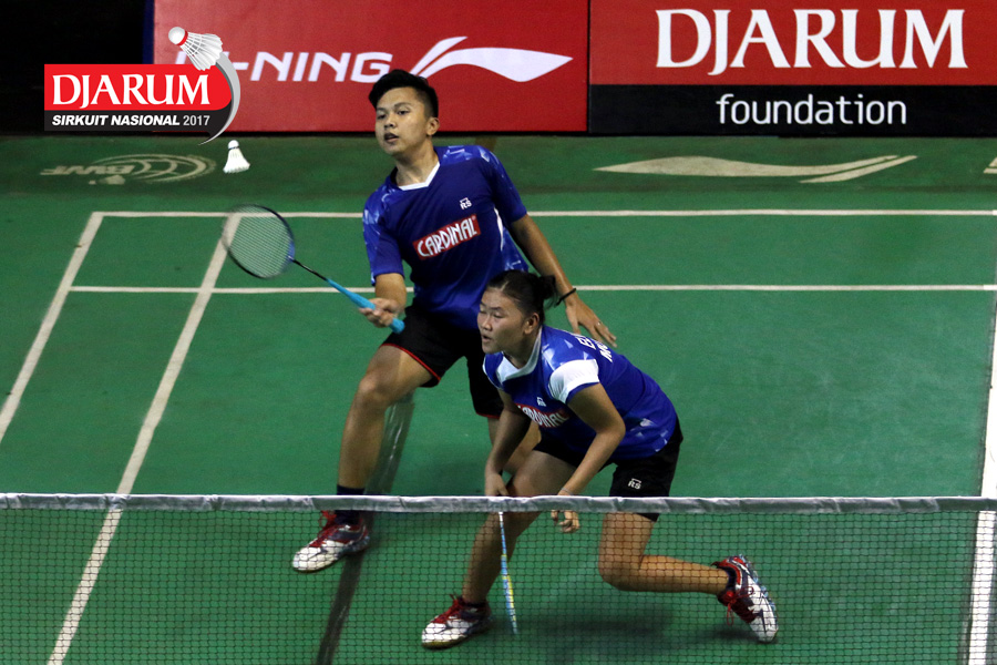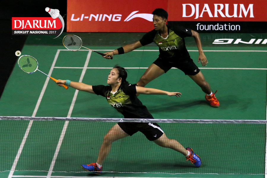 Bernadus Bagas/Indah Cahya (Djarum Kudus) Mengembalikan Shuttlecock