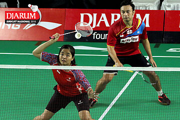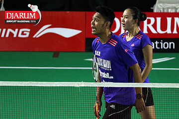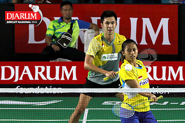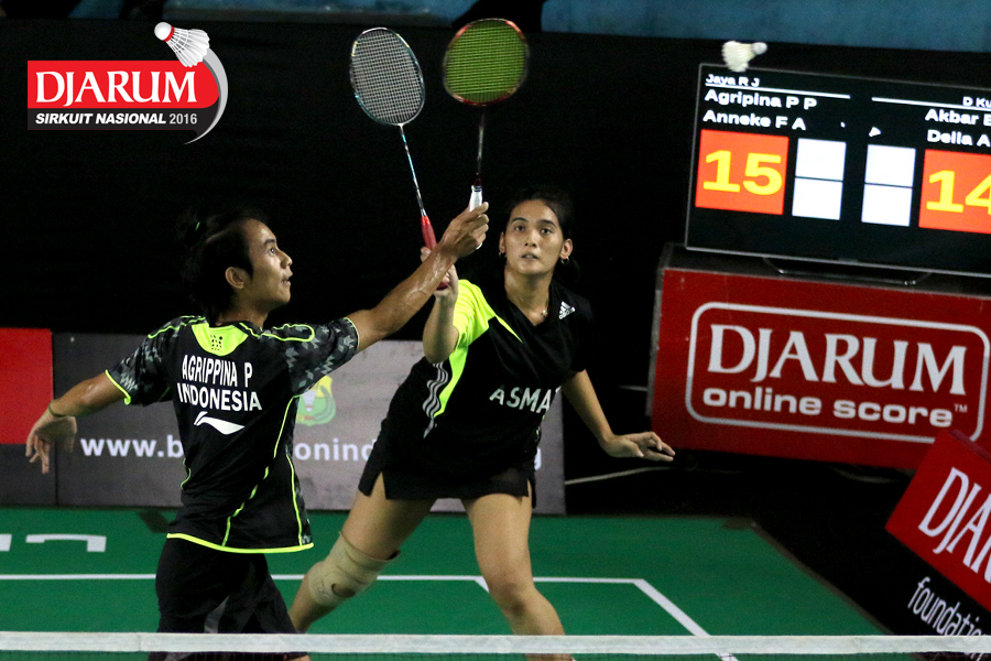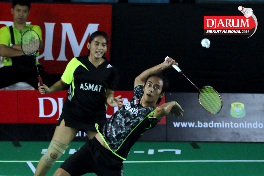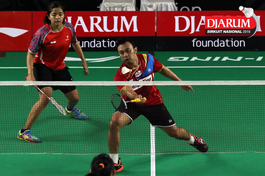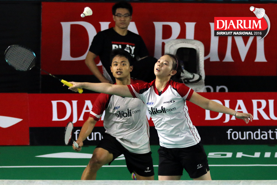 Akbar Bintang/Della Augustia (Djarum Kudus) menghadang serangan.