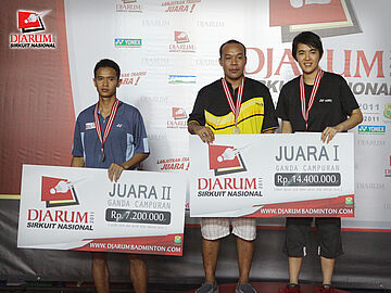 Juara I Ganda Campuran (Tri Kusumawardana/Vita Marissa) dan Senatria (kiri)