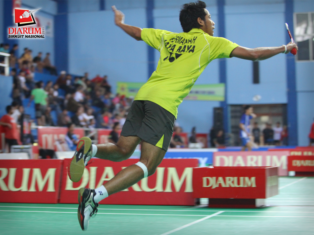 Hermasnyah melompat mengejar kok