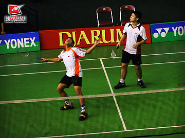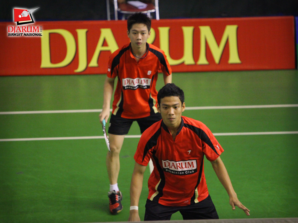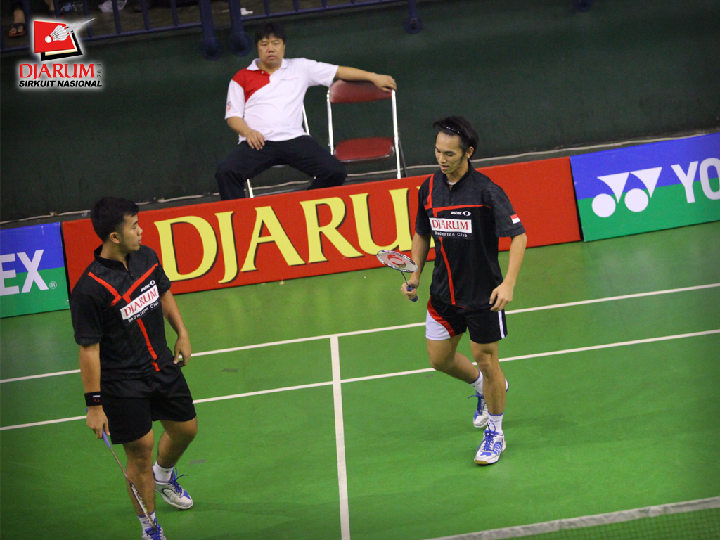 Fernando-Wifqi (PB. Djarum) setelah membalas kok lawan