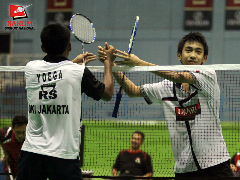 Deandra Fatwaka dan Yoga Sidik (Pelatprov DKI Jakarta) dalam babak penyisihan Ganda Remaja Putra Djarum Sirkuit Nasional (Sirnas) Pangkalpinang