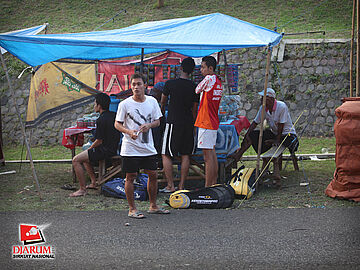 Pemain membeli jajanan selagi menunggu pertandingan