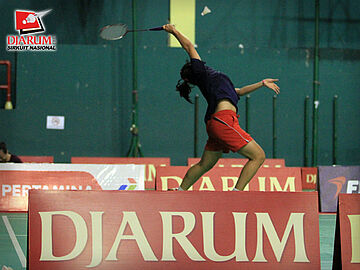 Peserta Djarum Sirnas tengah melakukan uji coba lapangan di GOR Sudirman, Minggu (30/10), jelang Djarum Sirkuit Nasional Surabaya, 31 0ktober- 5 November 2011.