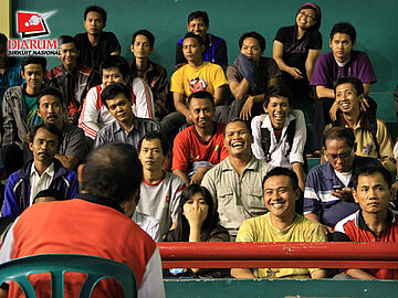 Suasana pelatihan wasit sebelum acara Djarum Sirkuit Nasional Surabaya di GOR Sudirman, Surabaya.