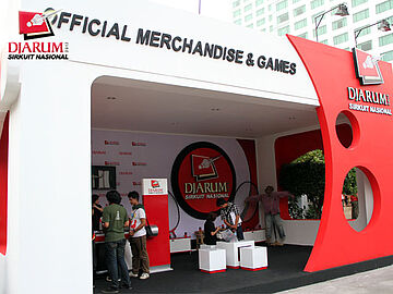 Booth Official Merchandise Djarum Sirkuit Nasional yang berada di area GOR Asia Afrika, Jakarta.